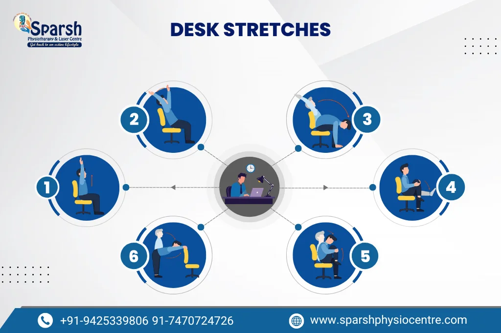 In today’s digital age, many people spend 8–10 hours a day sitting at desks. Poorly designed workstations lead to neck pain, back pain, shoulder stiffness, and wrist strain – conditions commonly treated at Sparsh Physio Centre.
